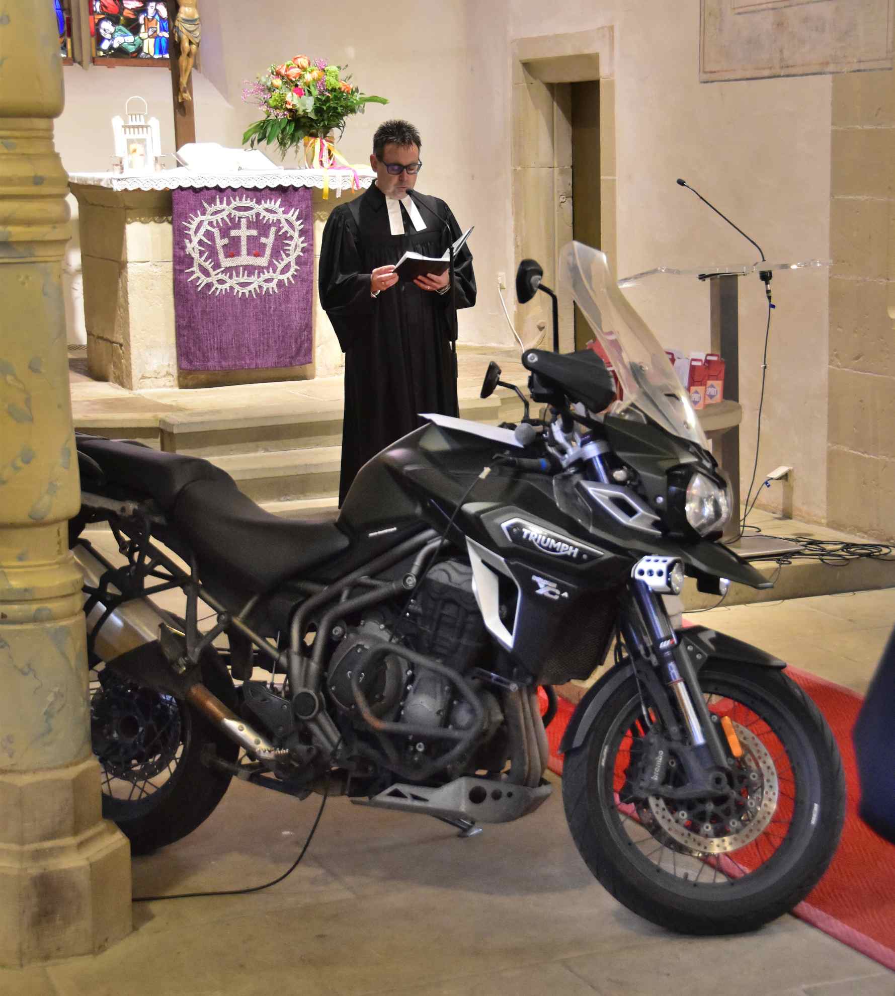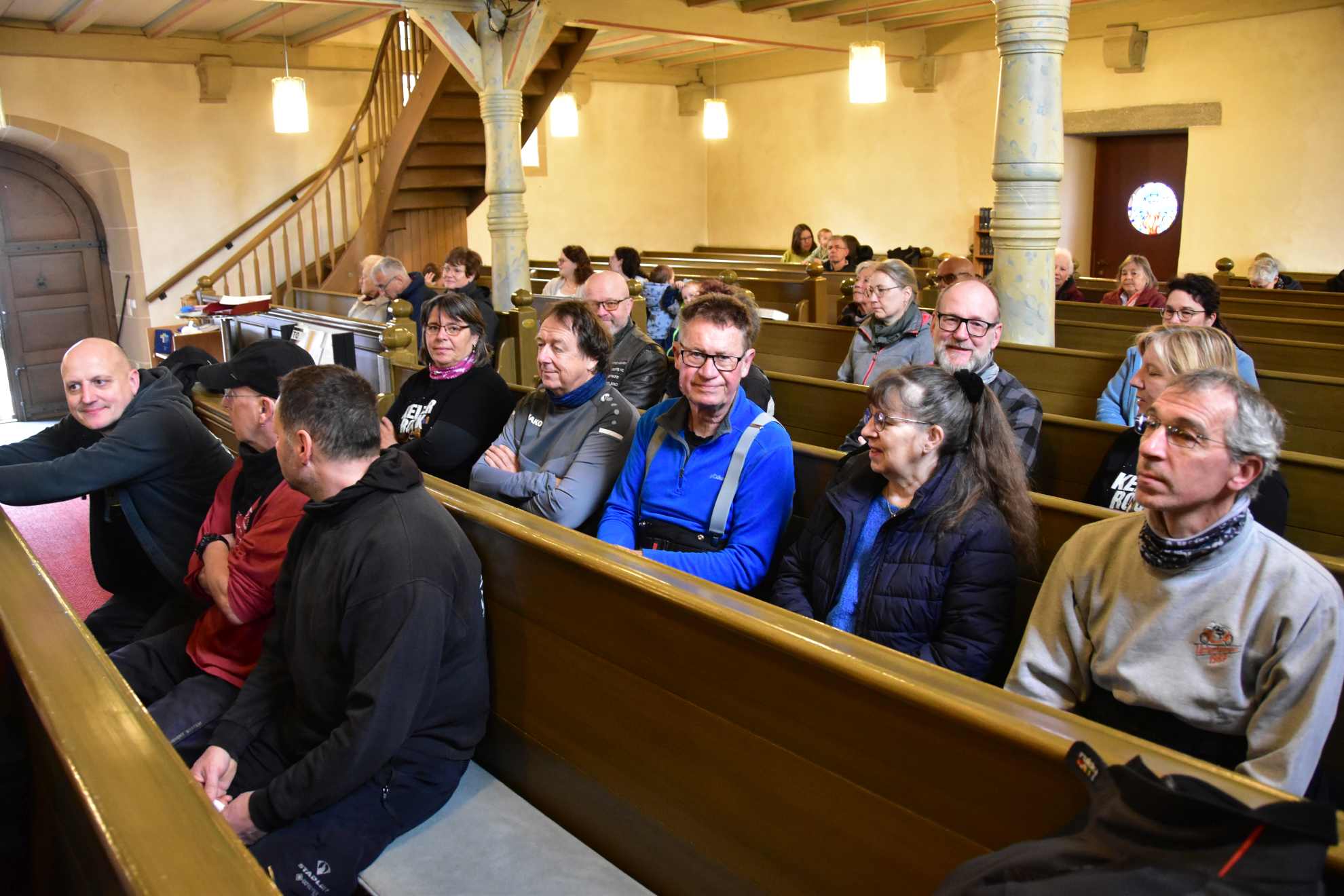 Pünktlich um 9:00 Uhr begann der Gottesdienst mit dem Motorrad-Thema „was füllt meinen Tank?“. Die Kirche war mit MCU-lern gut gefüllt und so bekamen wir den Segen für die neue Motorrad-Saison 2026. Bevor es los ging wurde von der Kirche noch kostenloser Kaffee und Kuchen ausgegeben.