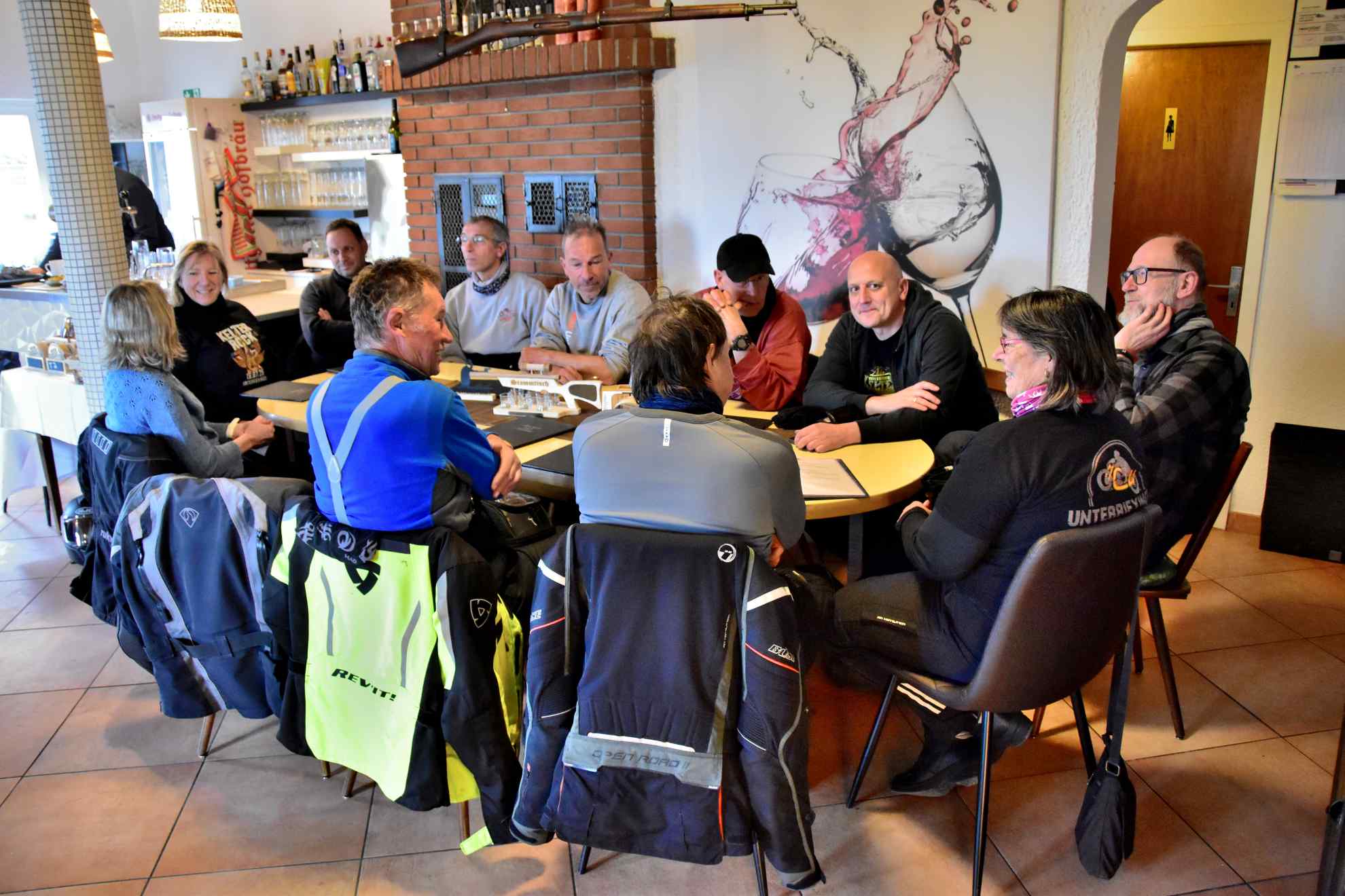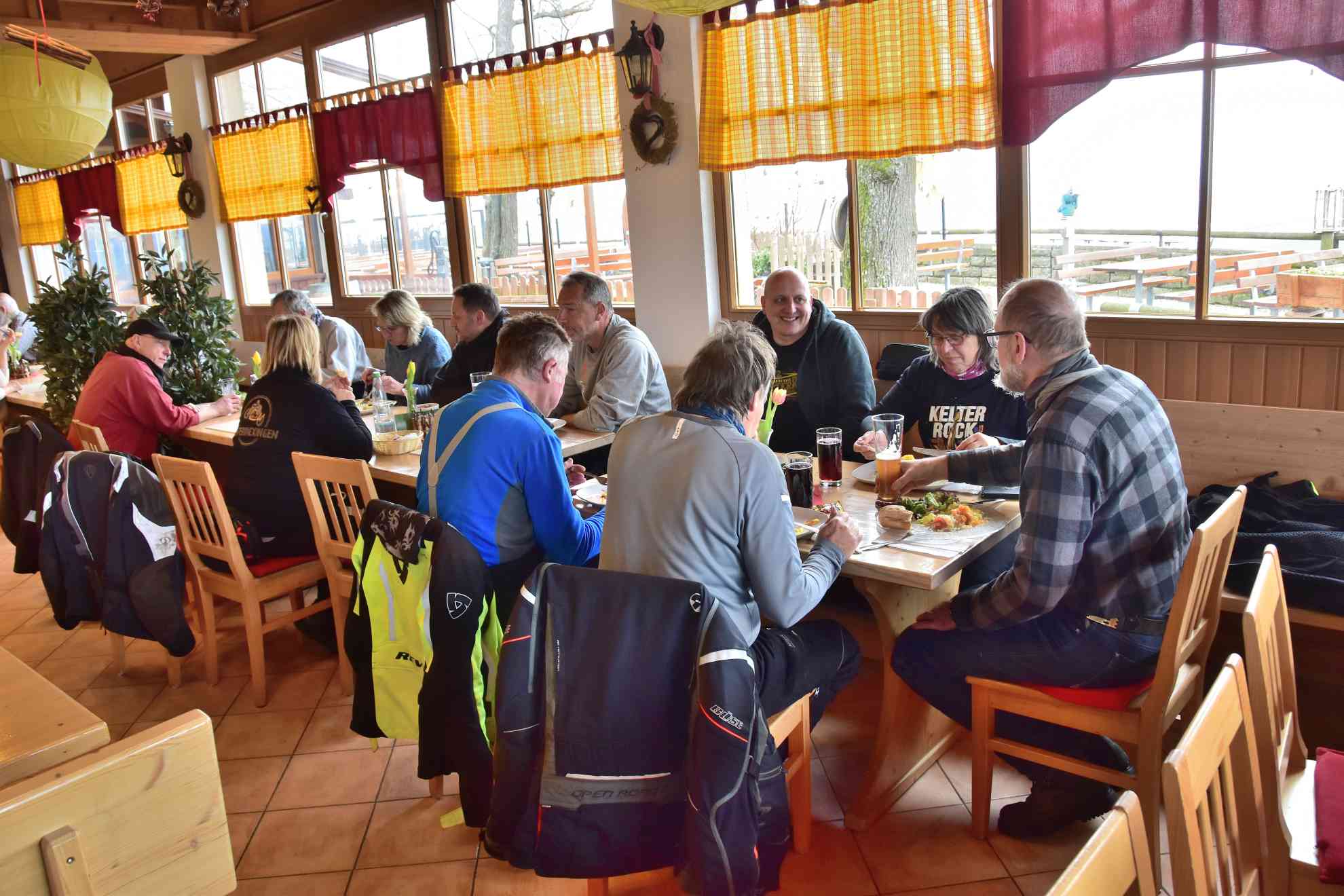 So gestärkt ging es in einer kurzen etwa 120 km langen Runde auf kleineren Straßen über Hessigheim, Pfahlhof, Lauffen, Schwaigern und Neippberg zum Hörnle nach Dürrenzimmern, wo Mittagspause angesagt war. Gut gestärkt wurde die kurze Runde über Brackenheim, Kleingartach, Zaberfeld, Häfnerhaslach und Kleinglattbach beendet und zum Abschluss in das Unterriexinger Schützenhaus eingekehrt. Die gesamt Runde waren für den März richtig gute Bedingungen: Während der Ausfahrt waren es 5° bis 8°C und immer trocken. Was will man mehr, es hat einfach super gepasst.
